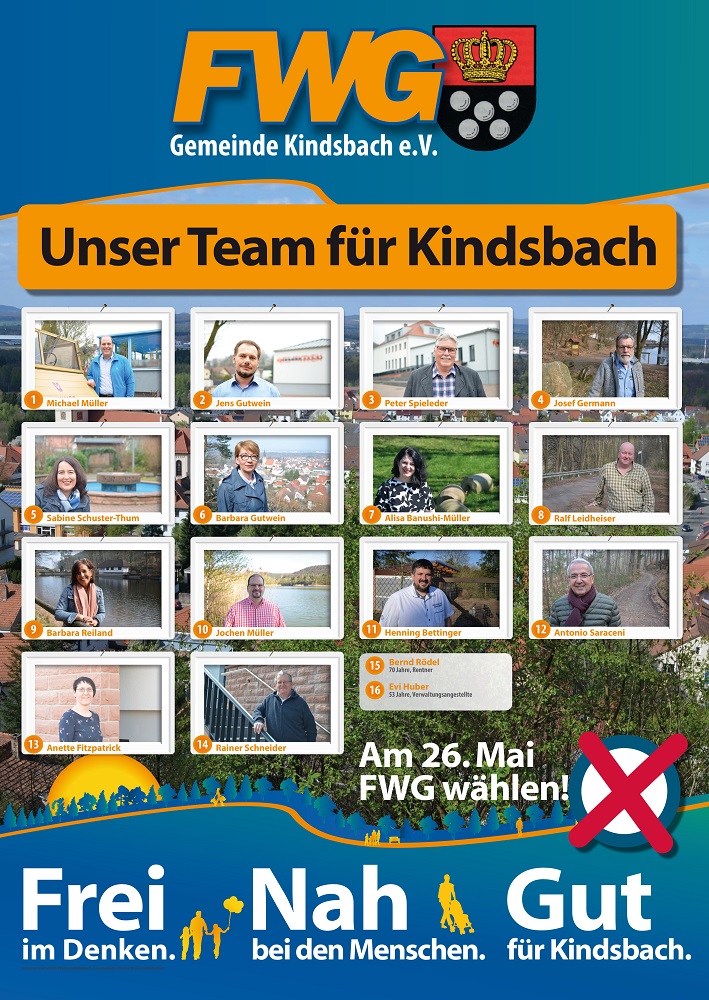 In Kindsbach und der Verbandsgemeinde Landstuhl braucht es die Freie Wählergruppe, denn nur wir sind die lokale Alternative zu den Parteien. Populismus und Parteipolitik hat in der Kommunalpolitik nichts zu suchen. Dort wird gesunder Menschenverstand gebraucht und es gilt, lokale und pragmatische Lösungen zu finden. Dafür steht die Freie Wählergruppe Kindsbach und wir haben in den letzten fünf Jahren bewiesen, dass wir es können!